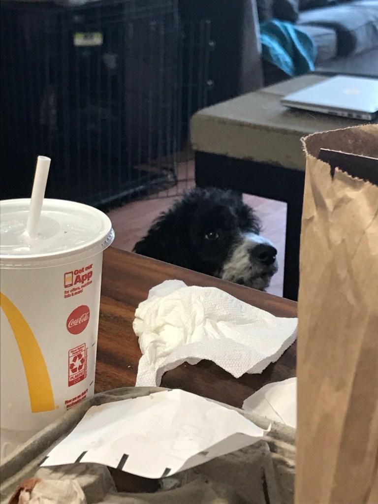 I took this picture at home while we were eating lunch.This picture is of my dog Earle while he is begging for food.