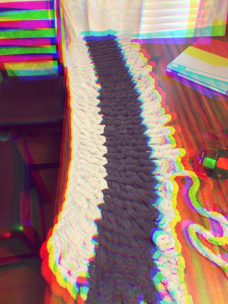 This is a picture of a blanket or what was supposed to be a blanket. My mom said that I should do something other then playing video games and sleeping.